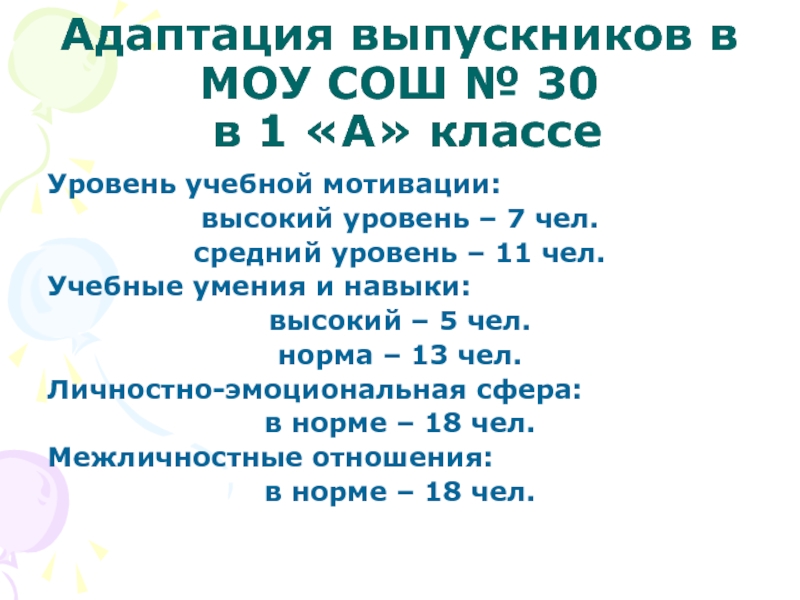 Слайд 29Адаптация выпускников в МОУ СОШ № 30