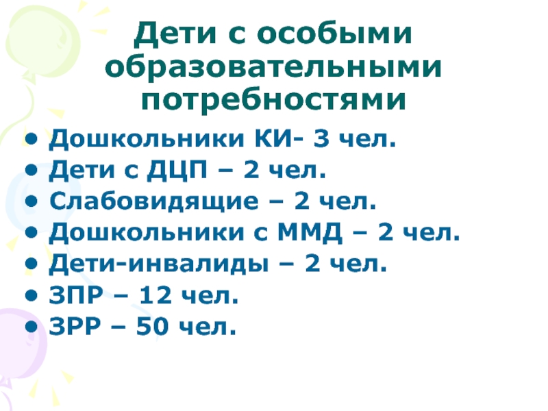 2. Создание необходимых условий для детей с ограниченными возможностями здоровья.