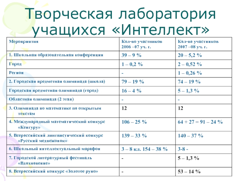Слайд 27Творческая лаборатория учащихся «Интеллект»