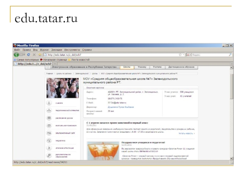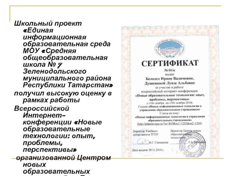 Слайд 17Внедрение ИКТ в образовательный процесс МОУ «СОШ № 7 ЗМР РТ»