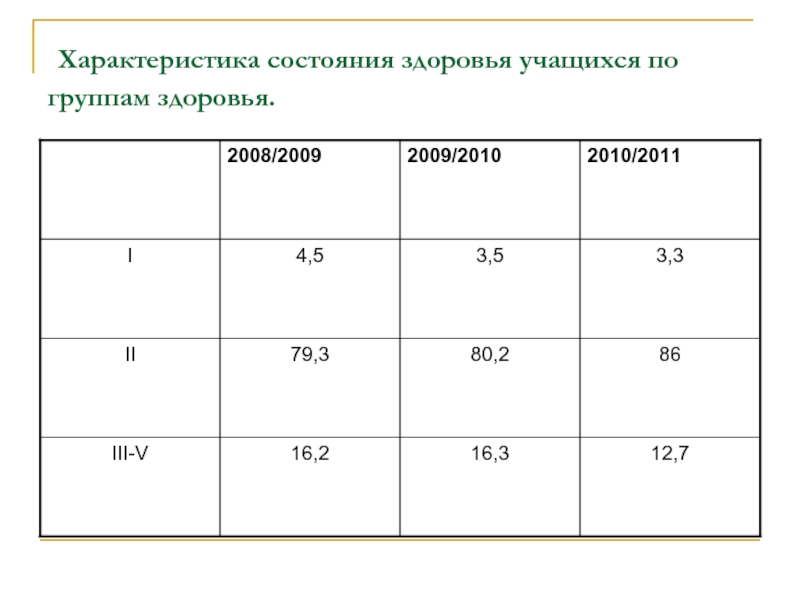 Слайд 41 Характеристика состояния здоровья учащихся по группам здоровья.