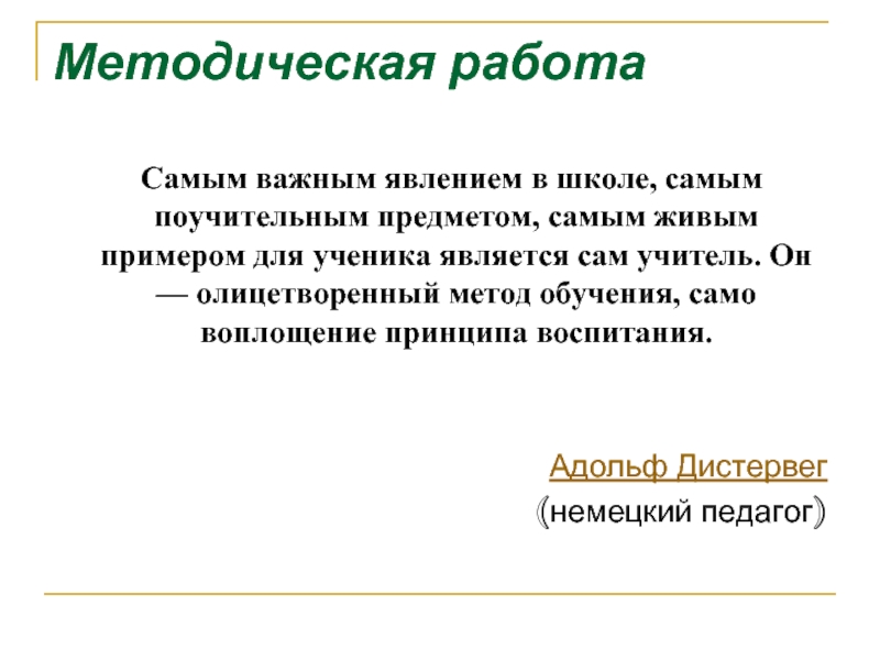самым живым примером для ученика является сам учитель. Он — олицетворенный метод обучения, само воплощение принципа воспитания.