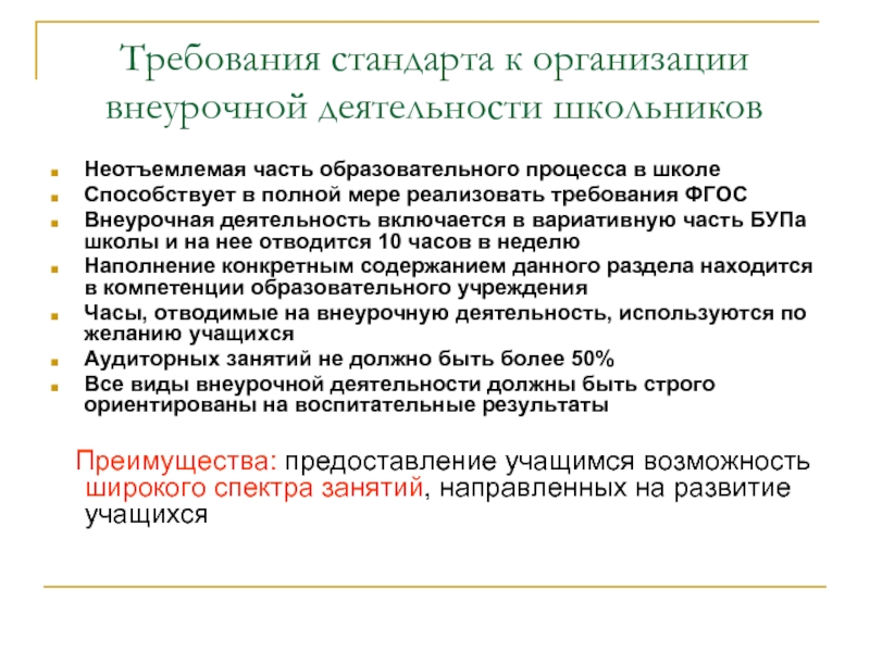 Слайд 43Требования стандарта к организации внеурочной деятельности школьников