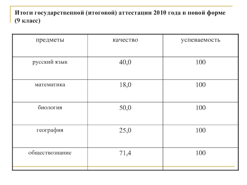 Слайд 5Итоги государственной (итоговой) аттестации 2010 года в новой форме (9 класс)