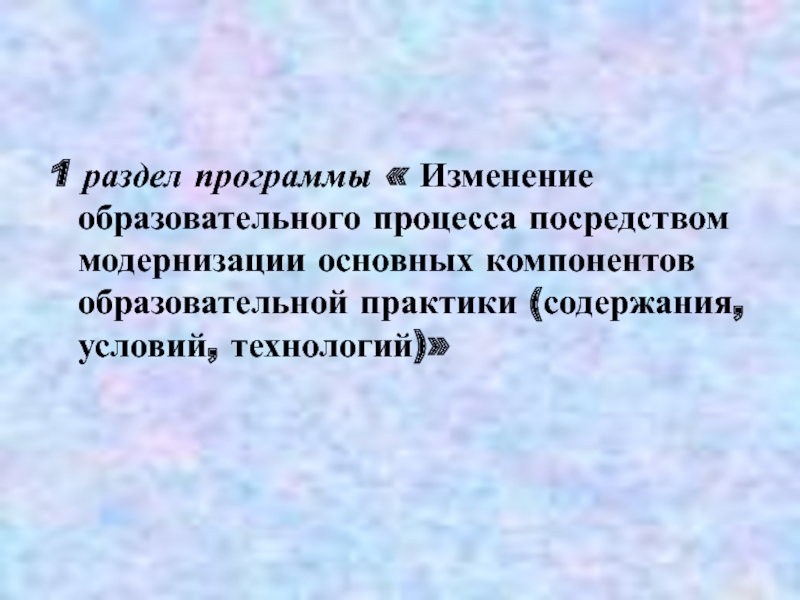 Слайд 111 раздел программы « Изменение образовательного процесса посредством модернизации основных компонентов