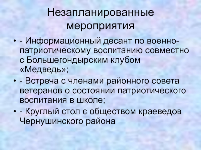 - Информационный десант по военно- патриотическому воспитанию совместно с Большегондырским