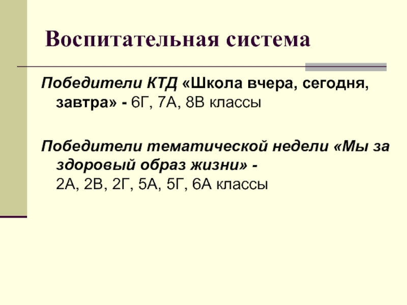 Победители КТД «Школа вчера, сегодня, завтра» - 6Г, 7А, 8В