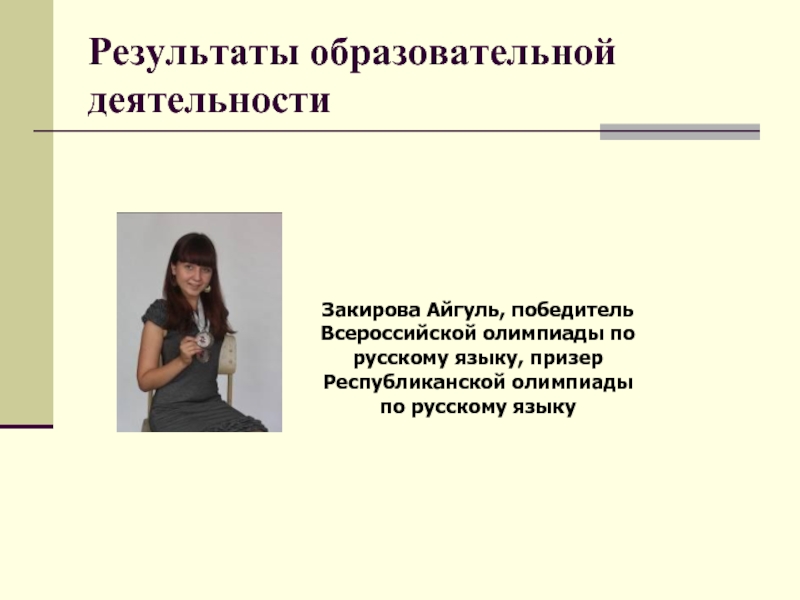 Закирова Айгуль, победитель Всероссийской олимпиады по русскому языку, призер