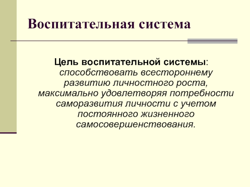 Цель воспитательной системы: способствовать всестороннему развитию личностного роста, максимально удовлетворяя