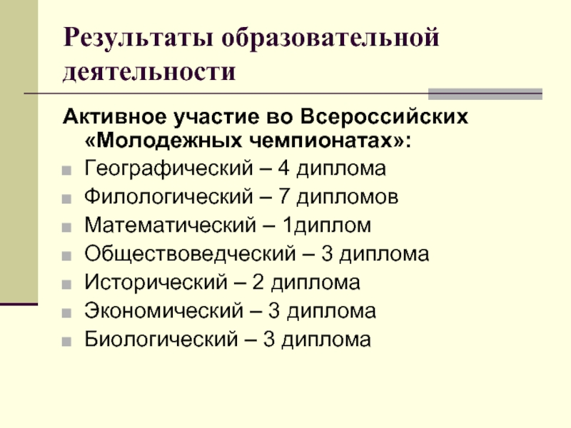 Активное участие во Всероссийских «Молодежных чемпионатах»: