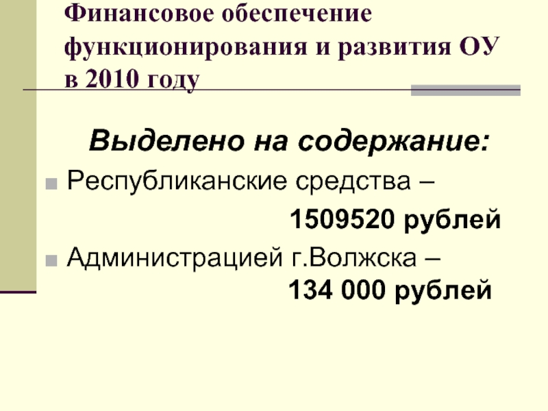 Слайд 13Финансовое обеспечение функционирования и развития ОУ