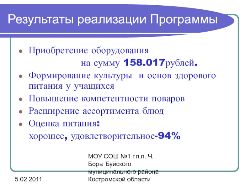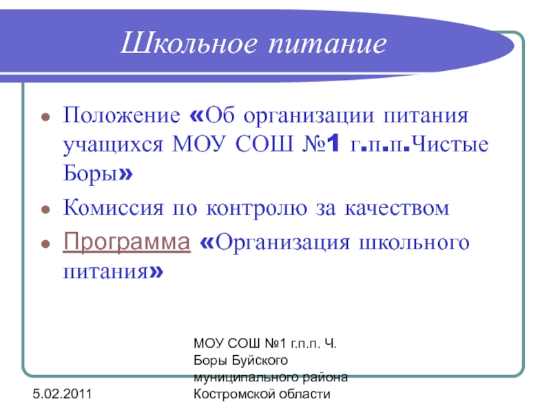 Положение «Об организации питания учащихся МОУ СОШ №1 г.п.п.Чистые Боры»