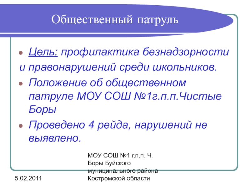 Положение об общественном патруле МОУ СОШ №1г.п.п.Чистые Боры