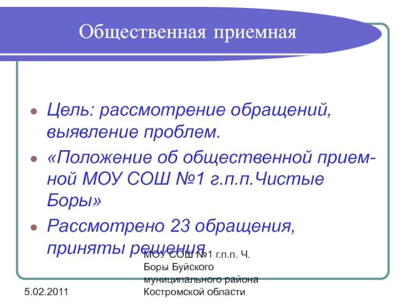 «Положение об общественной прием- ной МОУ СОШ №1 г.п.п.Чистые Боры»