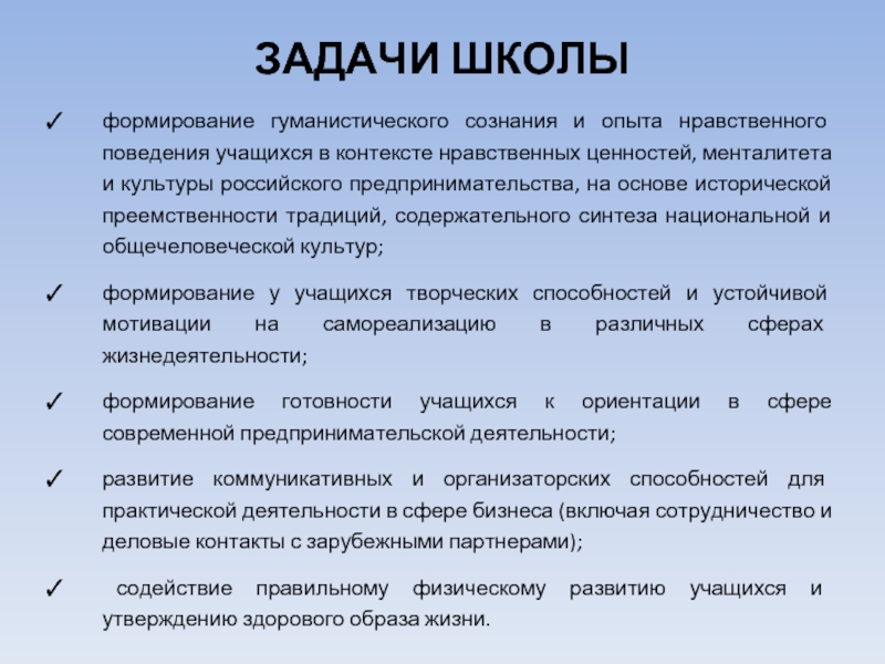Слайд 3ЗАДАЧИ ШКОЛЫ