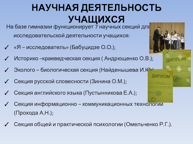 Слайд 7НАУЧНАЯ ДЕЯТЕЛЬНОСТЬ УЧАЩИХСЯ