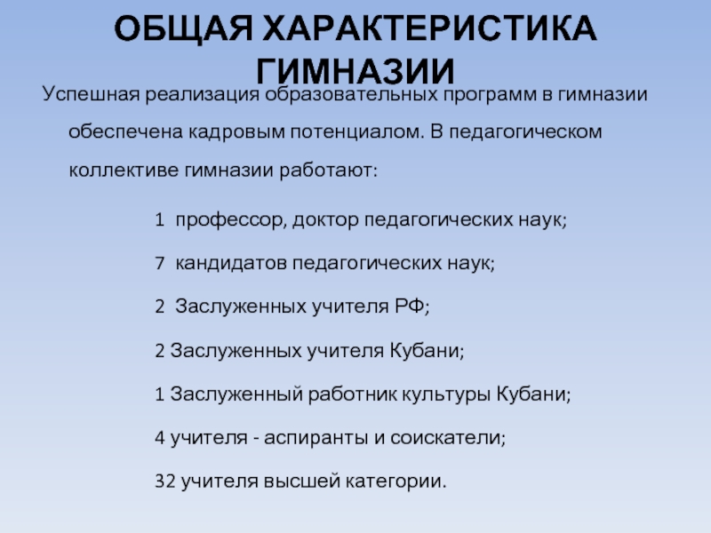 Слайд 6ОБЩАЯ ХАРАКТЕРИСТИКА ГИМНАЗИИ