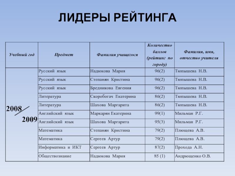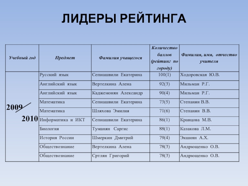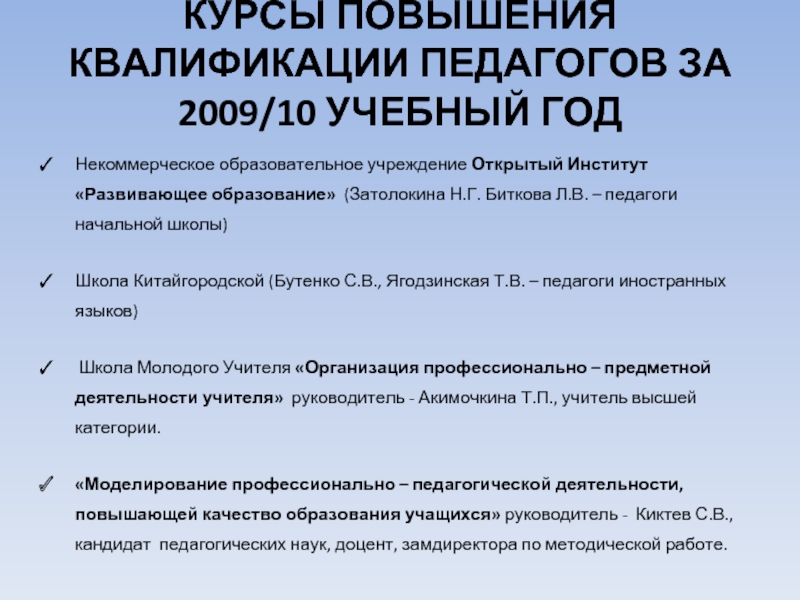 Слайд 16КУРСЫ ПОВЫШЕНИЯ КВАЛИФИКАЦИИ ПЕДАГОГОВ ЗА 2009/10 УЧЕБНЫЙ ГОД