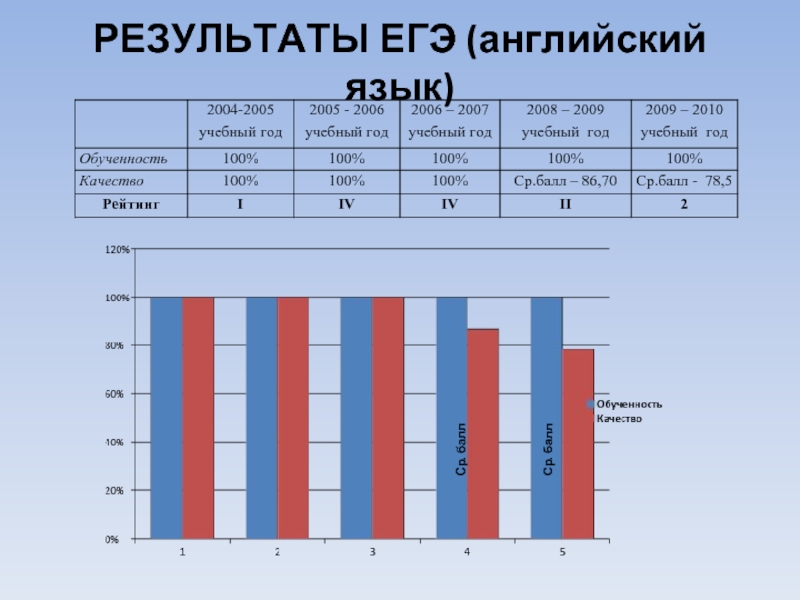 Слайд 10РЕЗУЛЬТАТЫ ЕГЭ (английский язык)