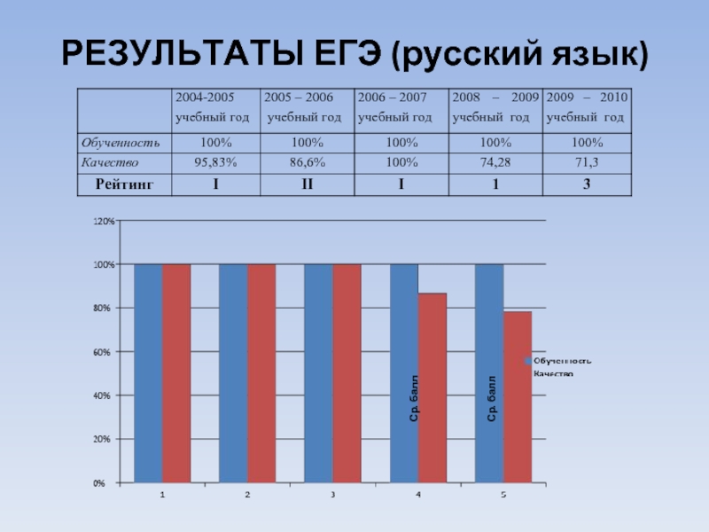 Слайд 9РЕЗУЛЬТАТЫ ЕГЭ (русский язык)