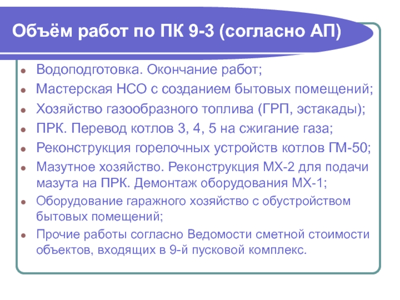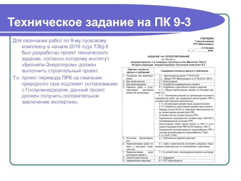 - перевод котлоагрегатов ПРК ст. N3, 4 и 5 на газ, включая АСУ ТП.