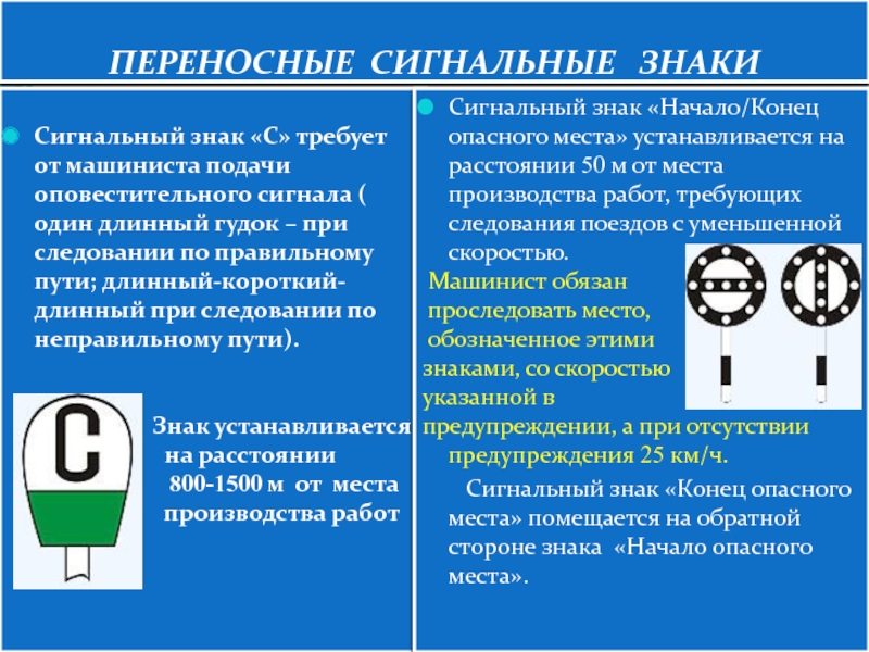 Переносные сигнальные знаки устанавливаются на шестах высотой 3 м с правой стороны по ходу движения подвижного состава.