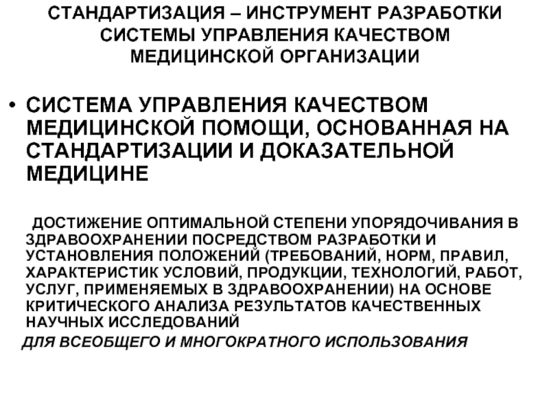 Слайд 66ЧТО НУЖНО МЕДИЦИНСКОЙ ОРГАНИЗАЦИИ ДЛЯ СОЗДАНИЯ СИСТЕМЫ УПРАВЛЕНИЯ КАЧЕСТВОМ МЕДИЦИНСКОЙ ПОМОЩИ