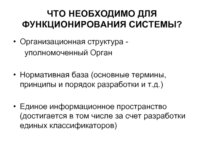 Слайд 60ЧТО НЕОБХОДИМО ДЛЯ ФУНКЦИОНИРОВАНИЯ СИСТЕМЫ?