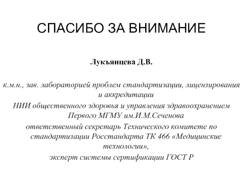 к.м.н., зав. лабораторией проблем стандартизации, лицензирования и