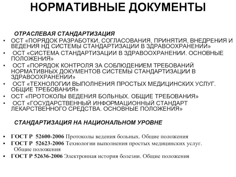 ОСТ «СИСТЕМА СТАНДАРТИЗАЦИИ В ЗДРАВООХРАНЕНИИ. ОСНОВНЫЕ ПОЛОЖЕНИЯ»