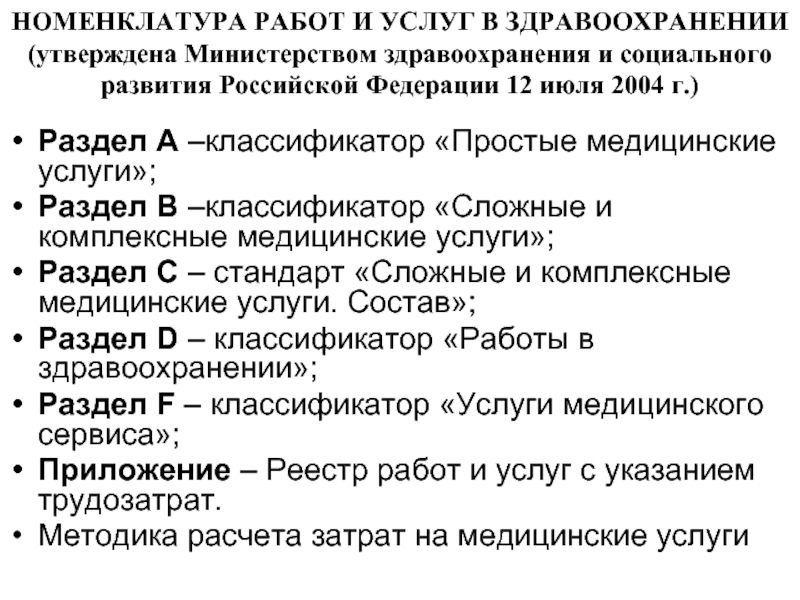 Слайд 65НОМЕНКЛАТУРА РАБОТ И УСЛУГ В ЗДРАВООХРАНЕНИИ