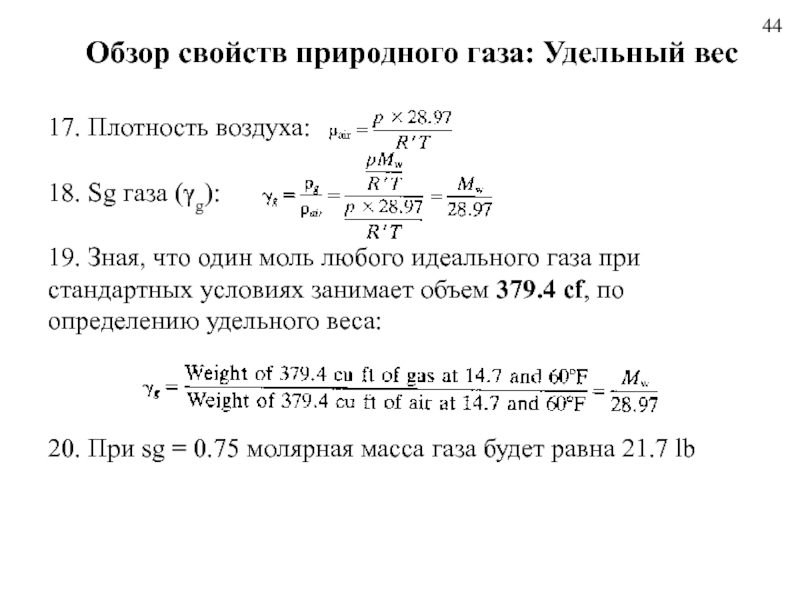 15. Sg это отношение плотности газа при определенных T и P к плотности воздуха при тех же T и P (60 0F и атмосферное P)