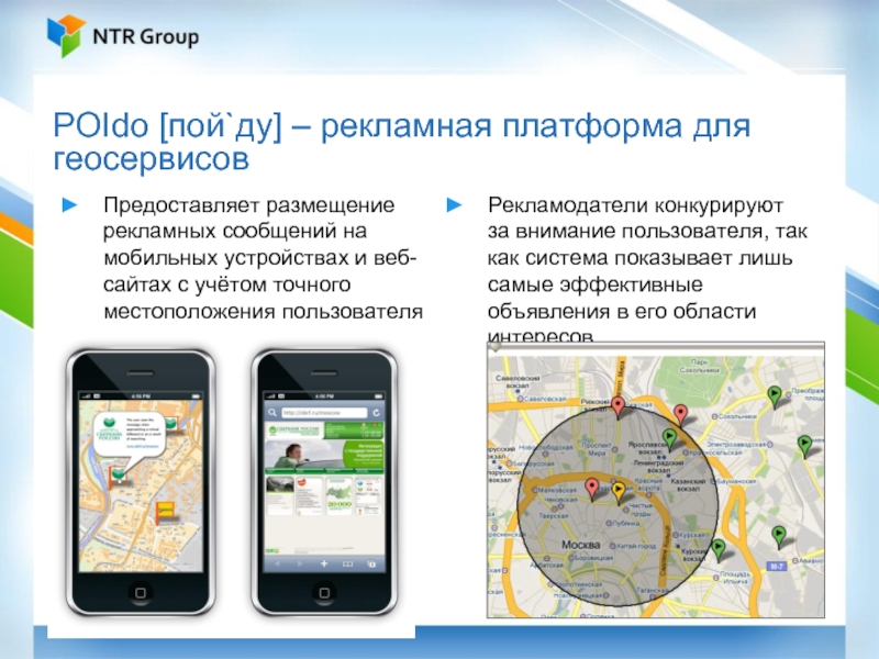 Предоставляет размещение рекламных сообщений на мобильных устройствах и веб-сайтах с учётом точного местоположения пользователя