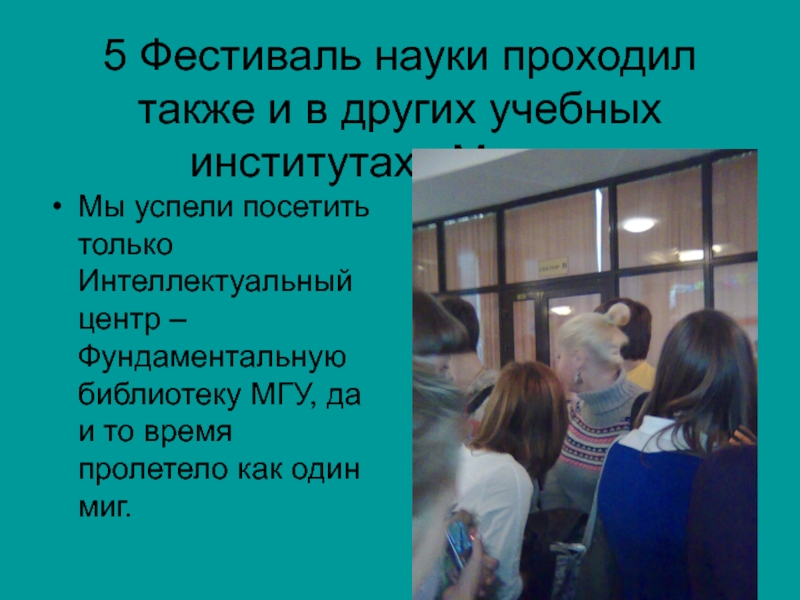 После уроков ученики 9 «А» и 10 «Б» классов с учителями Центра Образования №1637 приняли участие в 5 Фестивале науки на одной из площадок Фестиваля – в МГУ