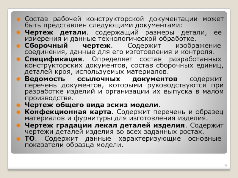 Слайд 6Состав рабочей конструкторской документации может быть представлен следующими документами: