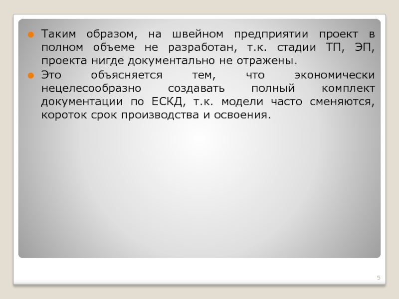 Слайд 5Таким образом, на швейном предприятии проект в полном объеме не разработан,