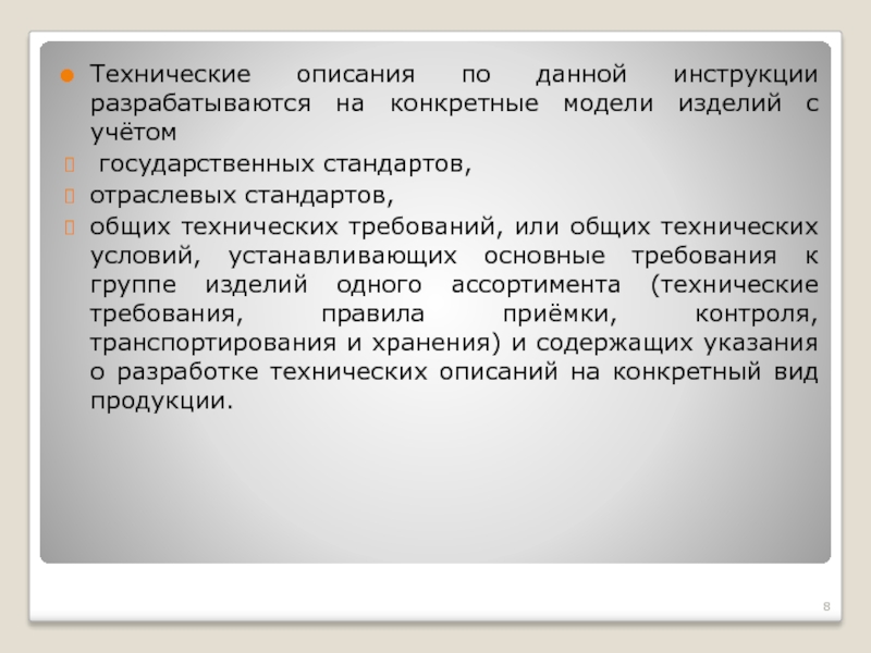 Слайд 8Технические описания по данной инструкции разрабатываются на конкретные модели изделий с