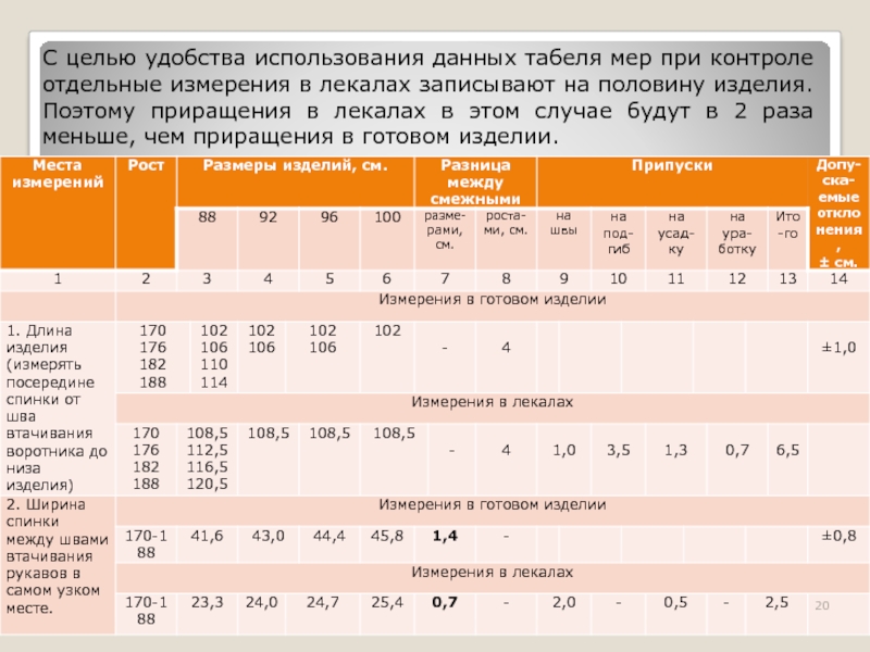 Слайд 20С целью удобства использования данных табеля мер при контроле отдельные измерения