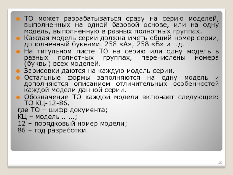 Слайд 10ТО может разрабатываться сразу на серию моделей, выполненных на одной базовой