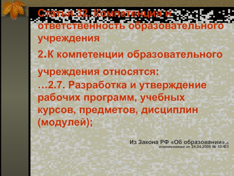 Из Закона РФ «Об образовании»,с изменениями от 24.04.2008 № 50-ФЗ