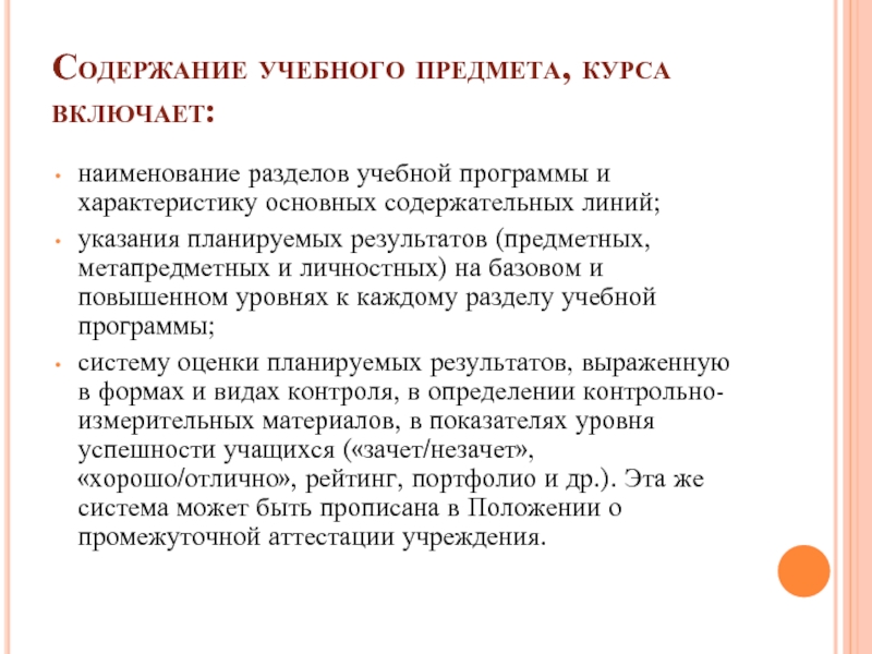 Слайд 10Содержание учебного предмета, курса включает: