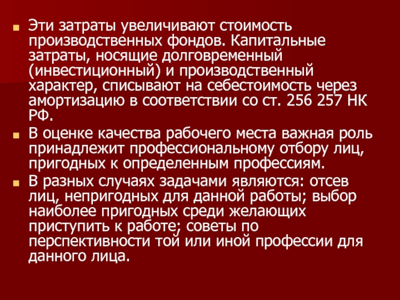 Слайд 29Эти затраты увеличивают стоимость производственных фондов. Капитальные затраты, носящие долговременный (инвестиционный)