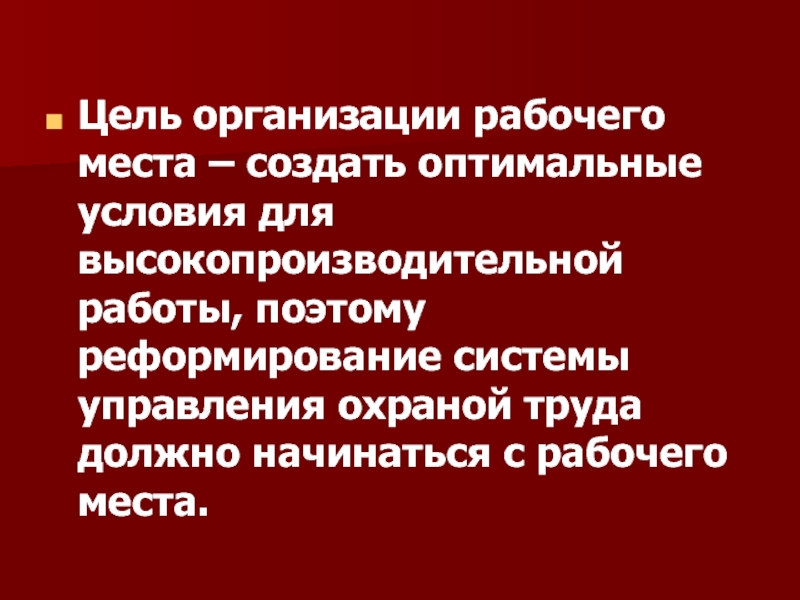 поэтому реформирование системы управления охраной труда должно начинаться с рабочего места.
