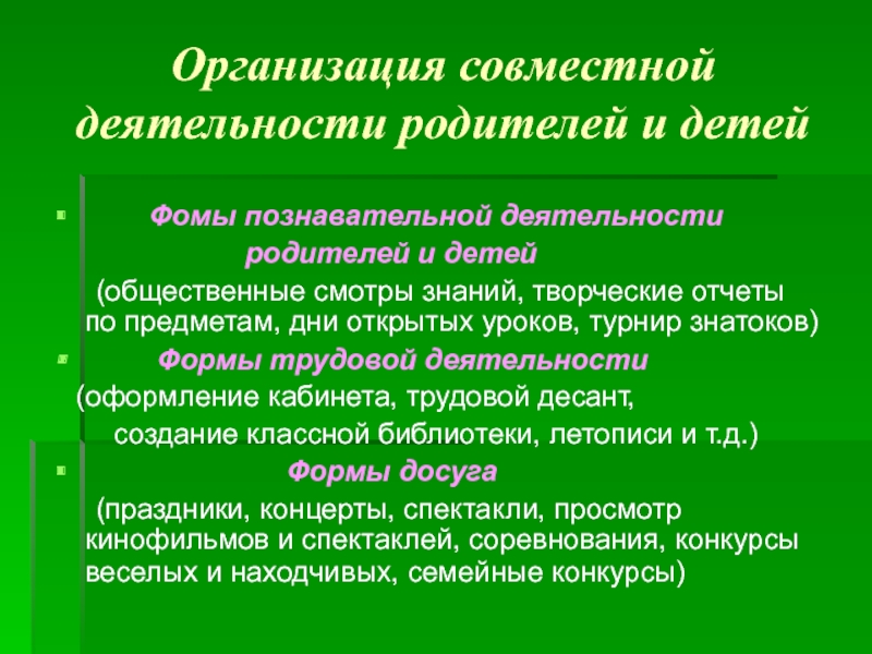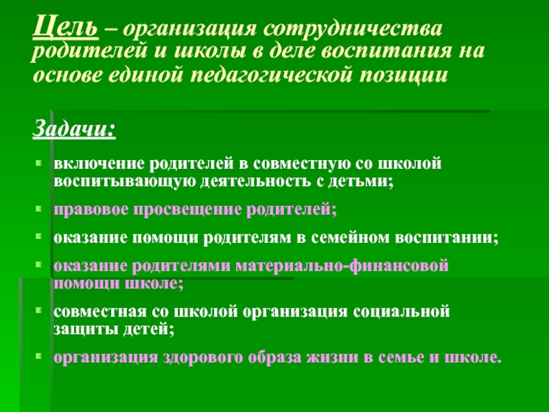 включение родителей в совместную со школой воспитывающую деятельность с детьми;