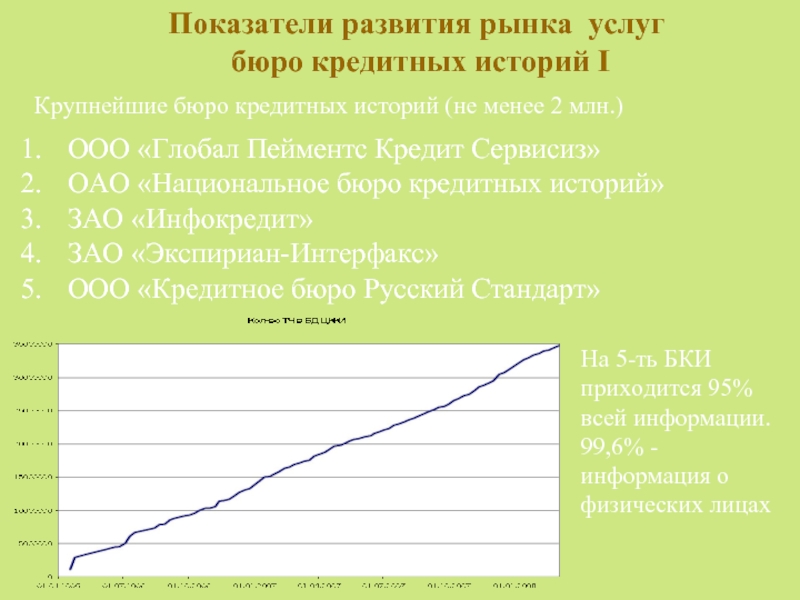 На 5-ть БКИ приходится 95% всей информации. 99,6% - информация о физических лицах