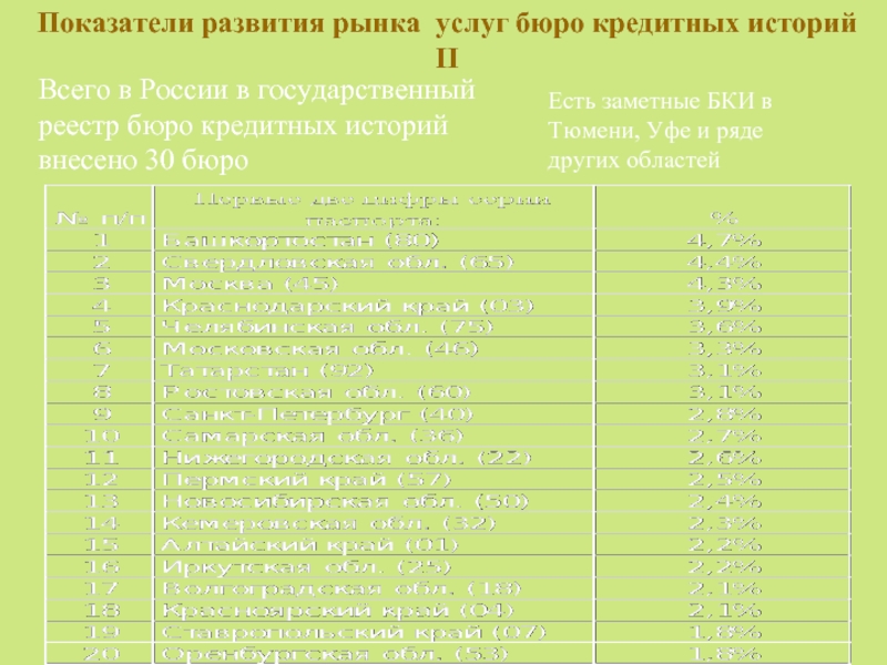 Есть заметные БКИ в Тюмени, Уфе и ряде других областей
