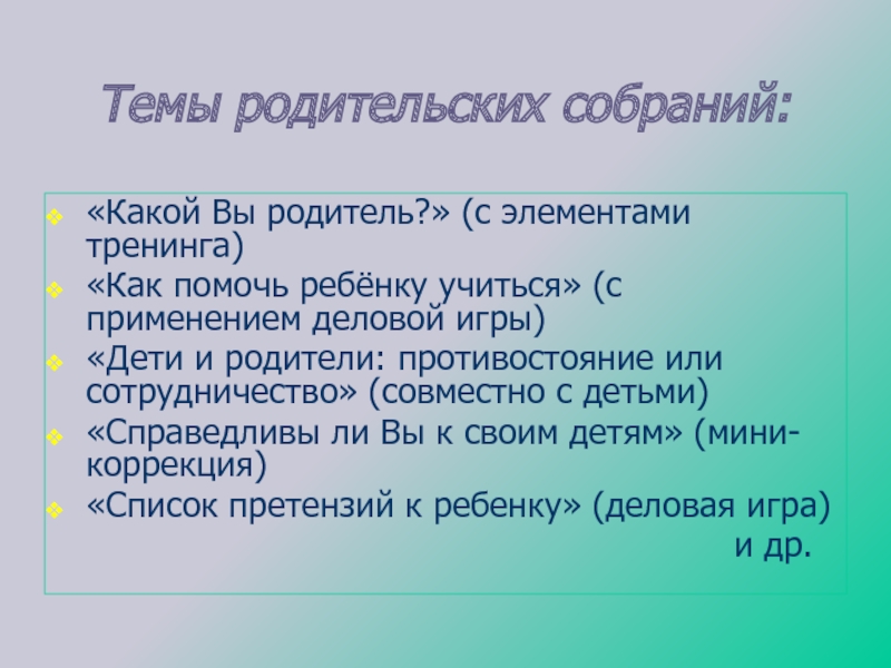 Слайд 14Темы родительских собраний: