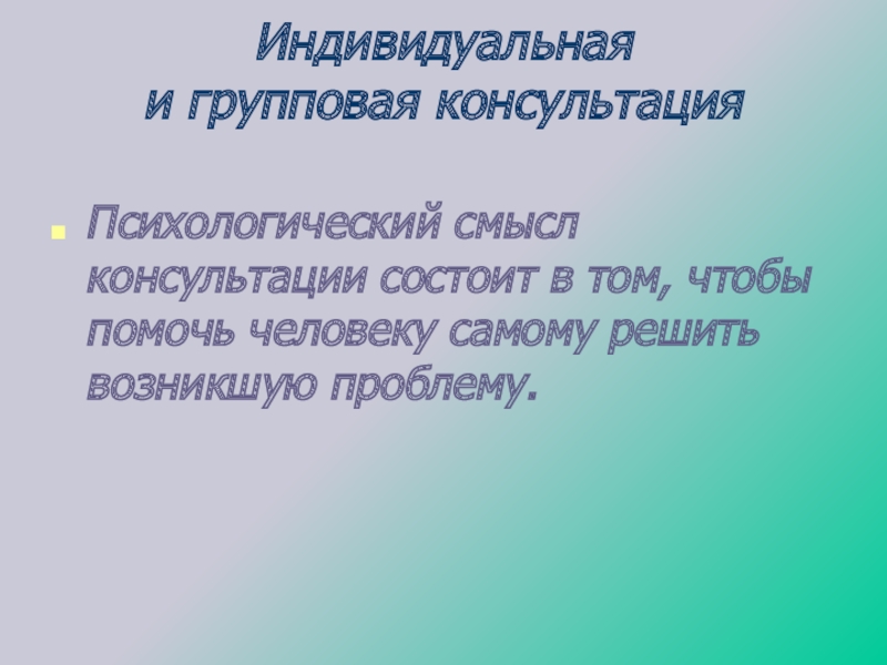 Психологический смысл консультации состоит в том, чтобы помочь
