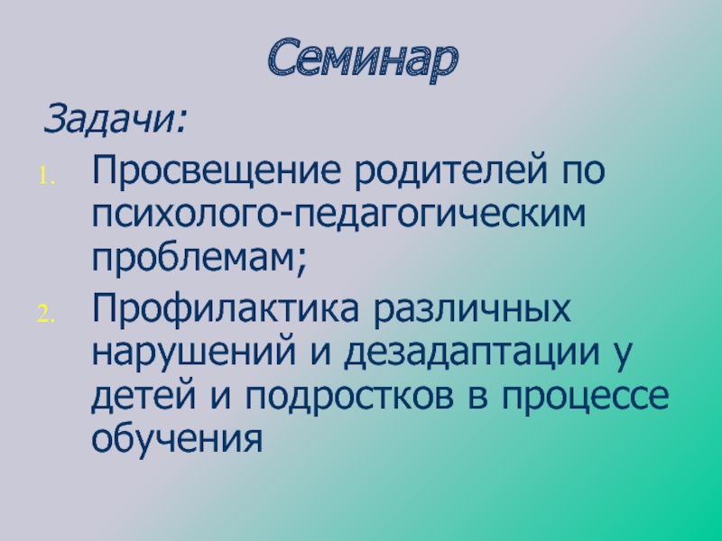 Просвещение родителей по психолого-педагогическим проблемам;