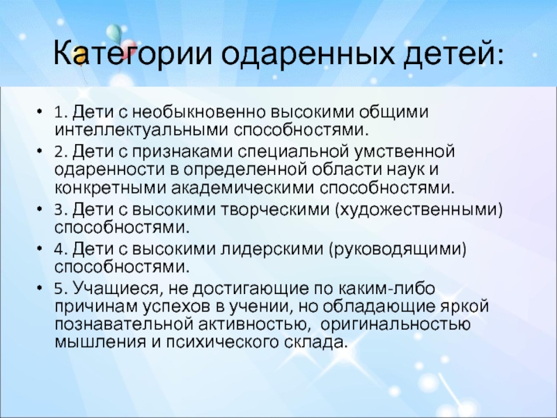 1. Дети с необыкновенно высокими общими интеллектуальными способностями.